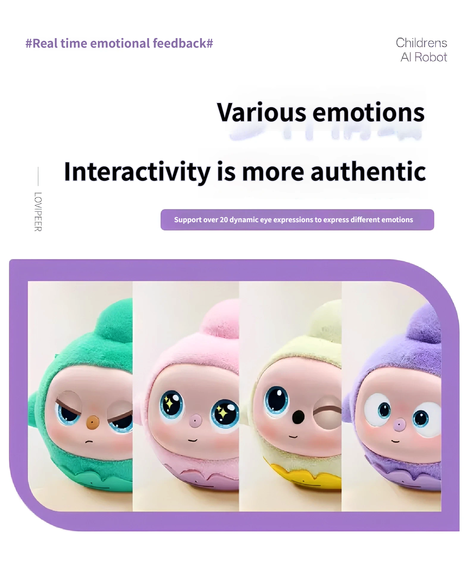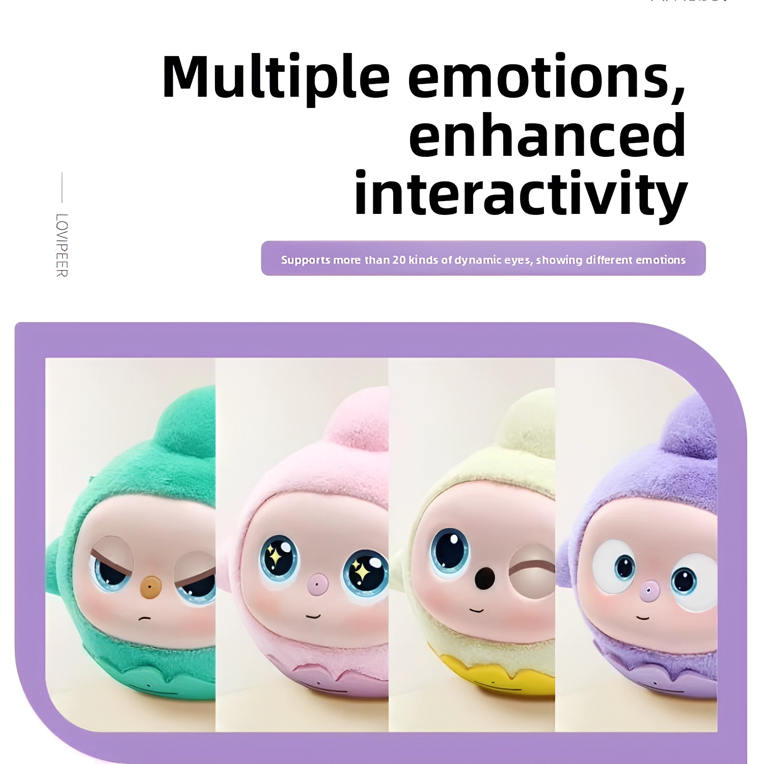 Authentic expression of various emotions, supporting more than 20 dynamic eye expressions,