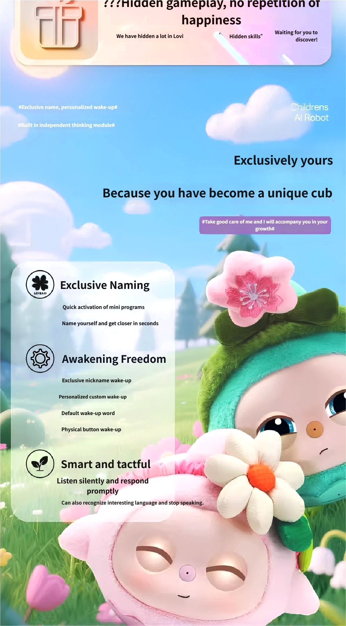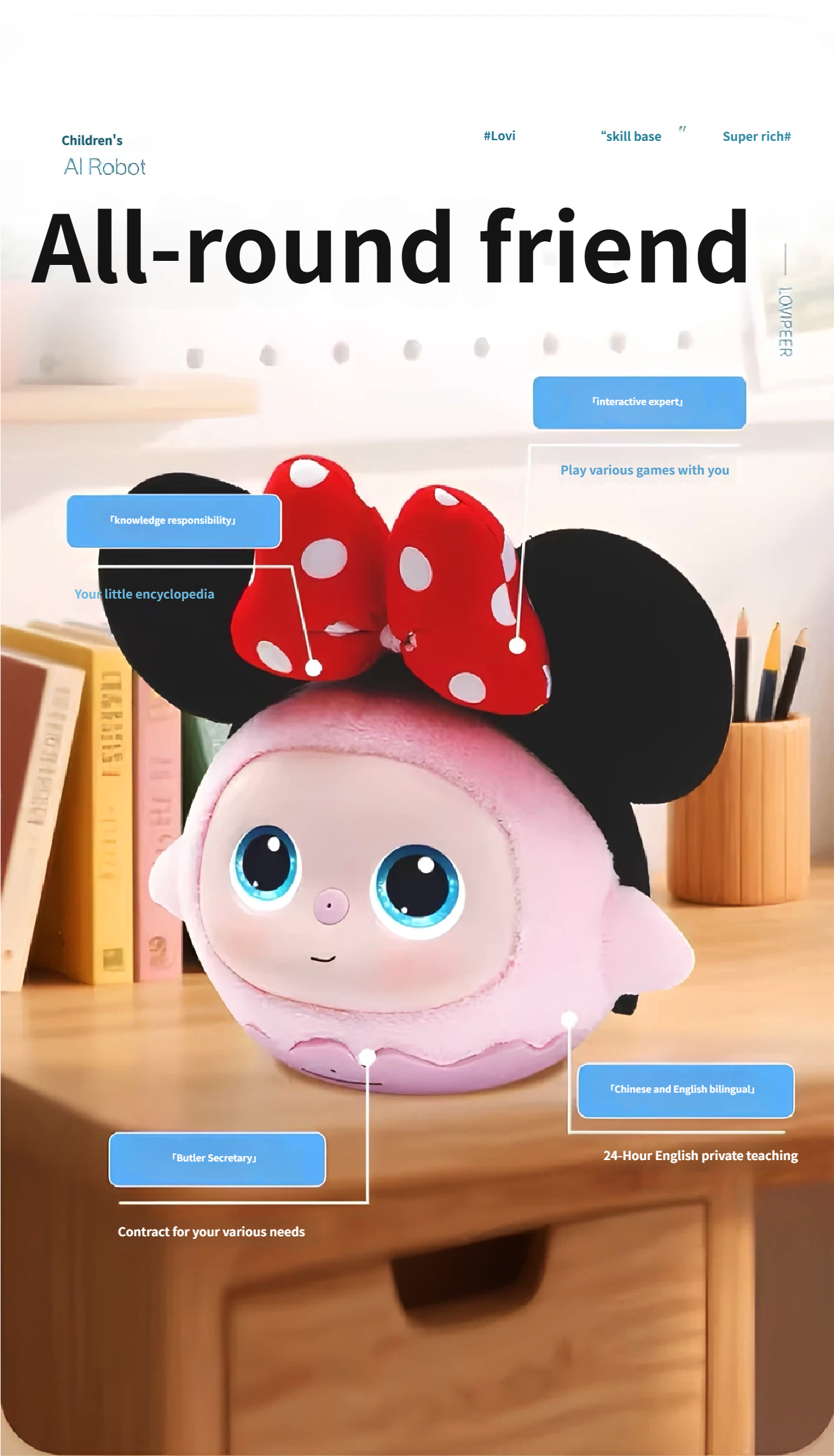 An all-round little companion, accompanying in chatting, playing and studying, a knowledgeable little encyclopedia,