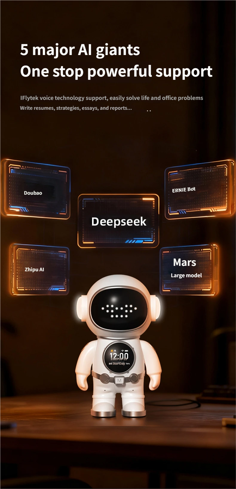 Supported large models include: Doubao, Deepseek, Ernie Bot, Zhipu AI, Mars Large Model, etc.