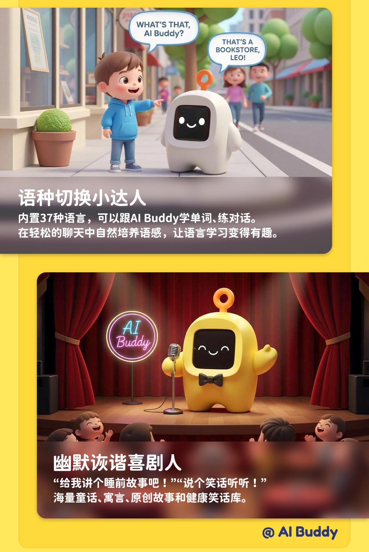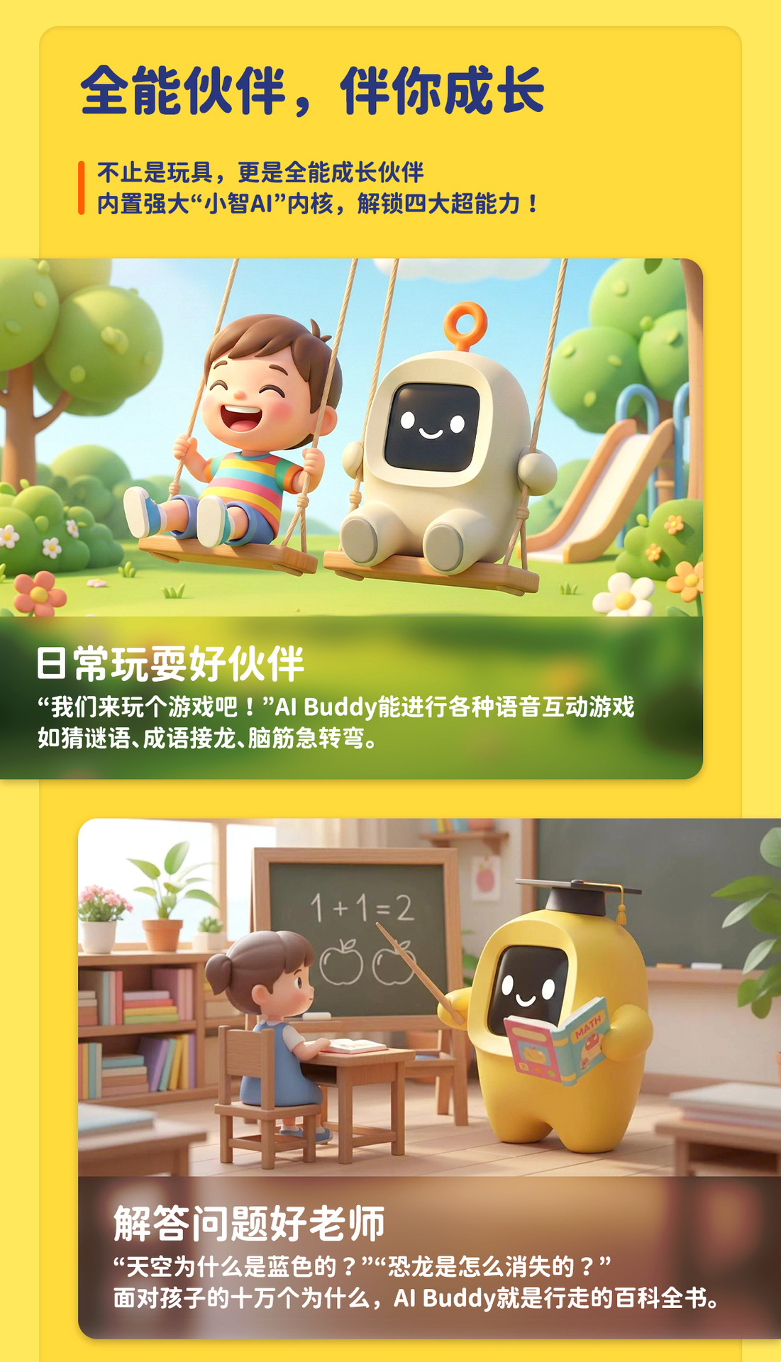 Intelligent dialogue, voice interaction, emotional companionship, parent-child interaction mode, AI learning and growth