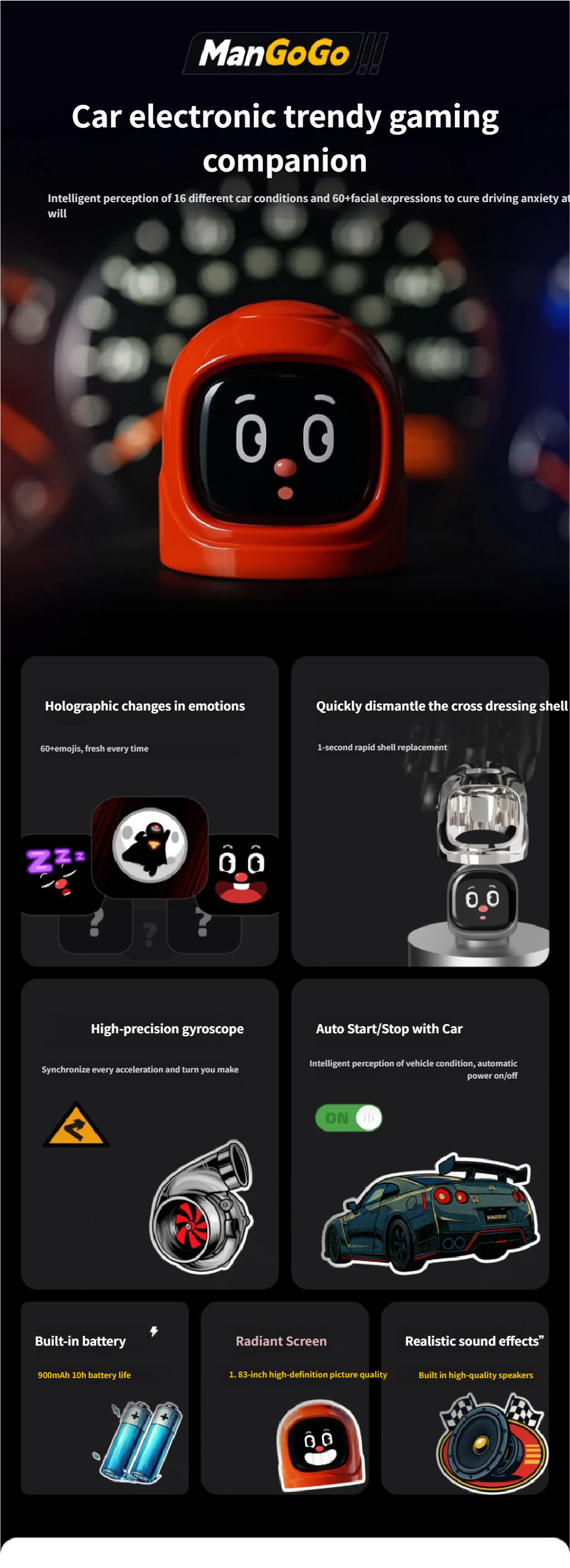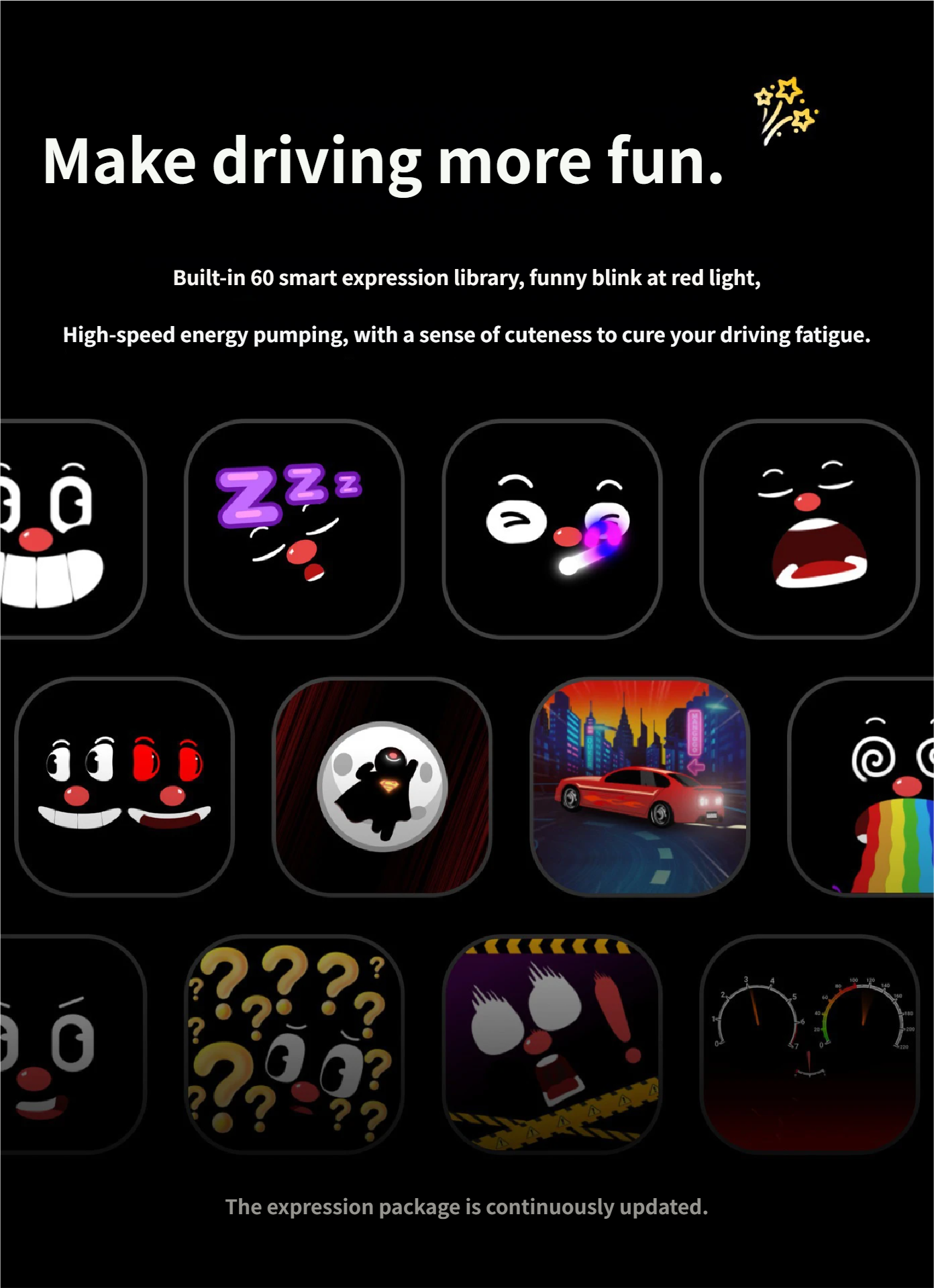 Intelligently senses 16 kinds of vehicle conditions, with over 60 expressions to casually alleviate driving anxiety, resistant to low and high temperatures: -20°-70°