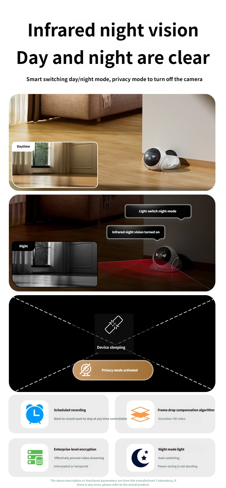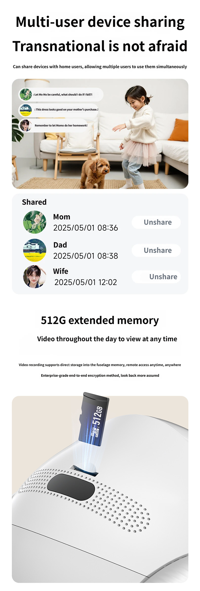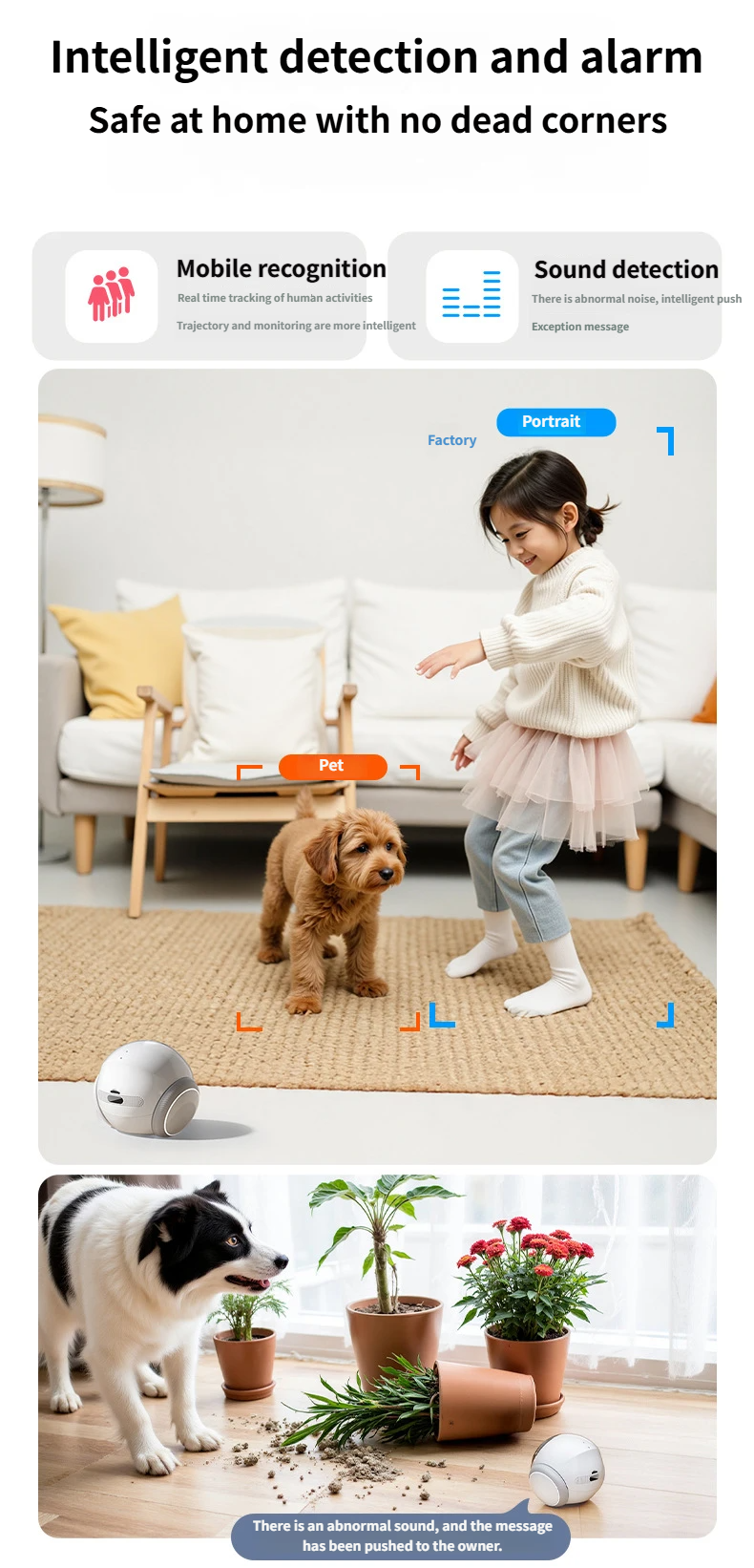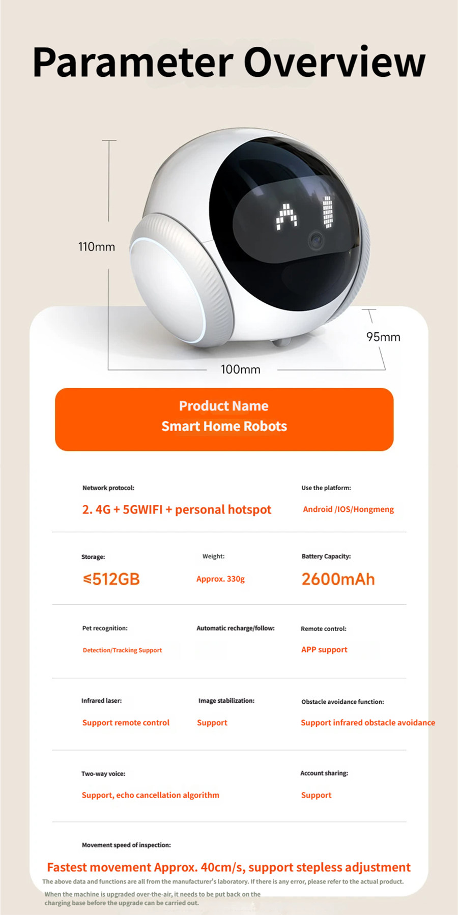 Mobile remote control/real-time monitoring/automatic recharging/anti-tipping,, 360° no dead angle, mobile remote control, a great helper for all-day care of the elderly, children and pets.